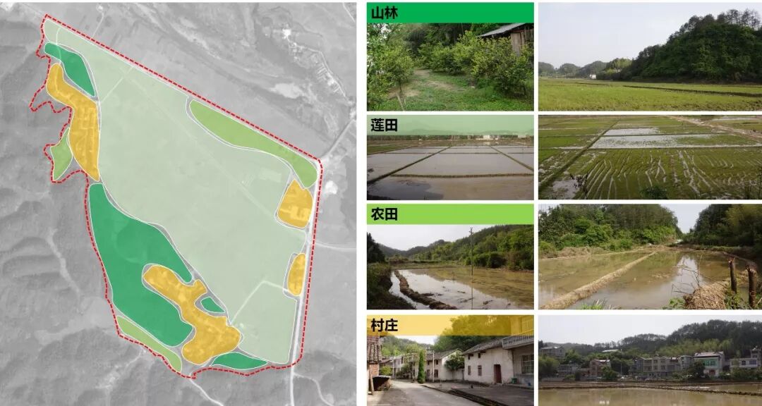 農(nóng)田:耕種水稻等農(nóng)作物,現(xiàn)狀肌理明顯;