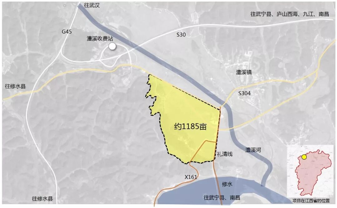 項目位于武寧縣澧溪鎮(zhèn)西面長樂村,距離澧溪鎮(zhèn)城區(qū)1.5公里。地處贛鄂邊界,東臨世界文化遺產(chǎn)廬山,北倚國家級風景名勝九宮山,南連國家森林公園三爪侖。